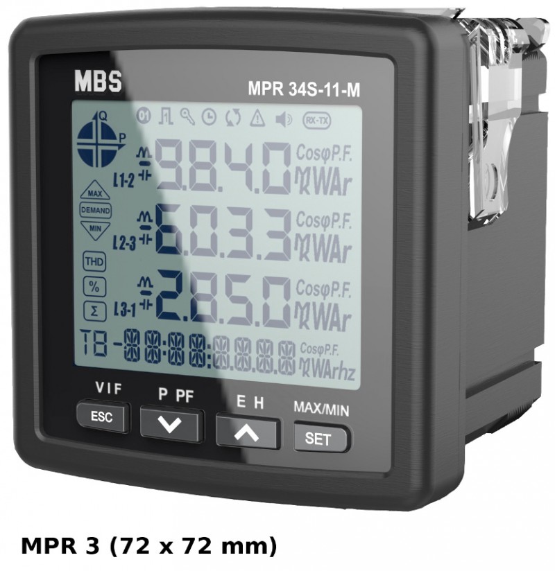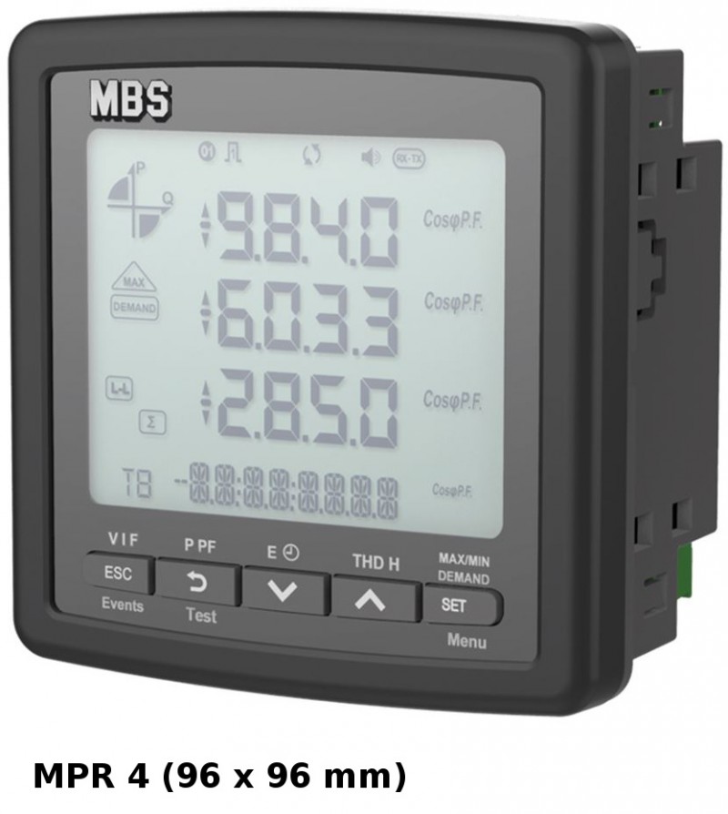 The multifunctional meters MPR 3 (72 x 72 mm) and MPR 4 (96 x 96 mm) in conjunction with the current transformer set ASKDS are specially designed for the monitoring of equally or unequally loaded 3- or 4-phase networks in building technology. All relevant data can thus be measured and displayed.