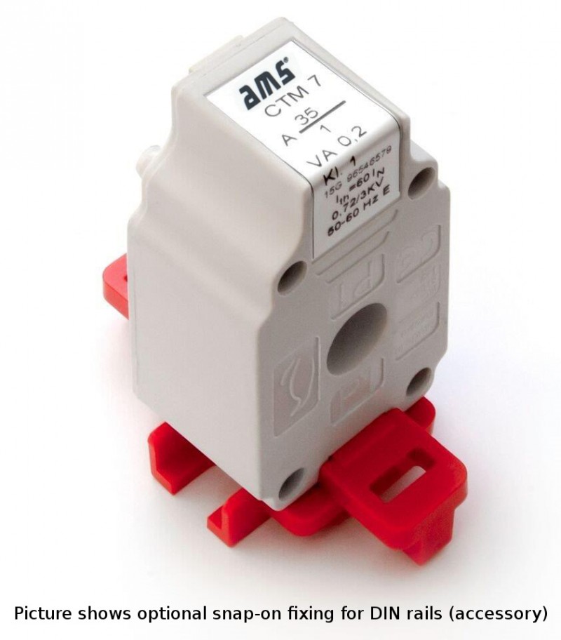 Snap-on fixing for mounting the current transformer on a DIN-rail (please order separately).