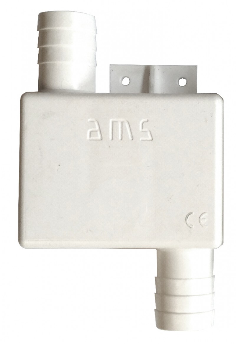 The siphon stench trap is available for hose sizes 3/4 inch (19 mm) and 1 inch (25 mm).